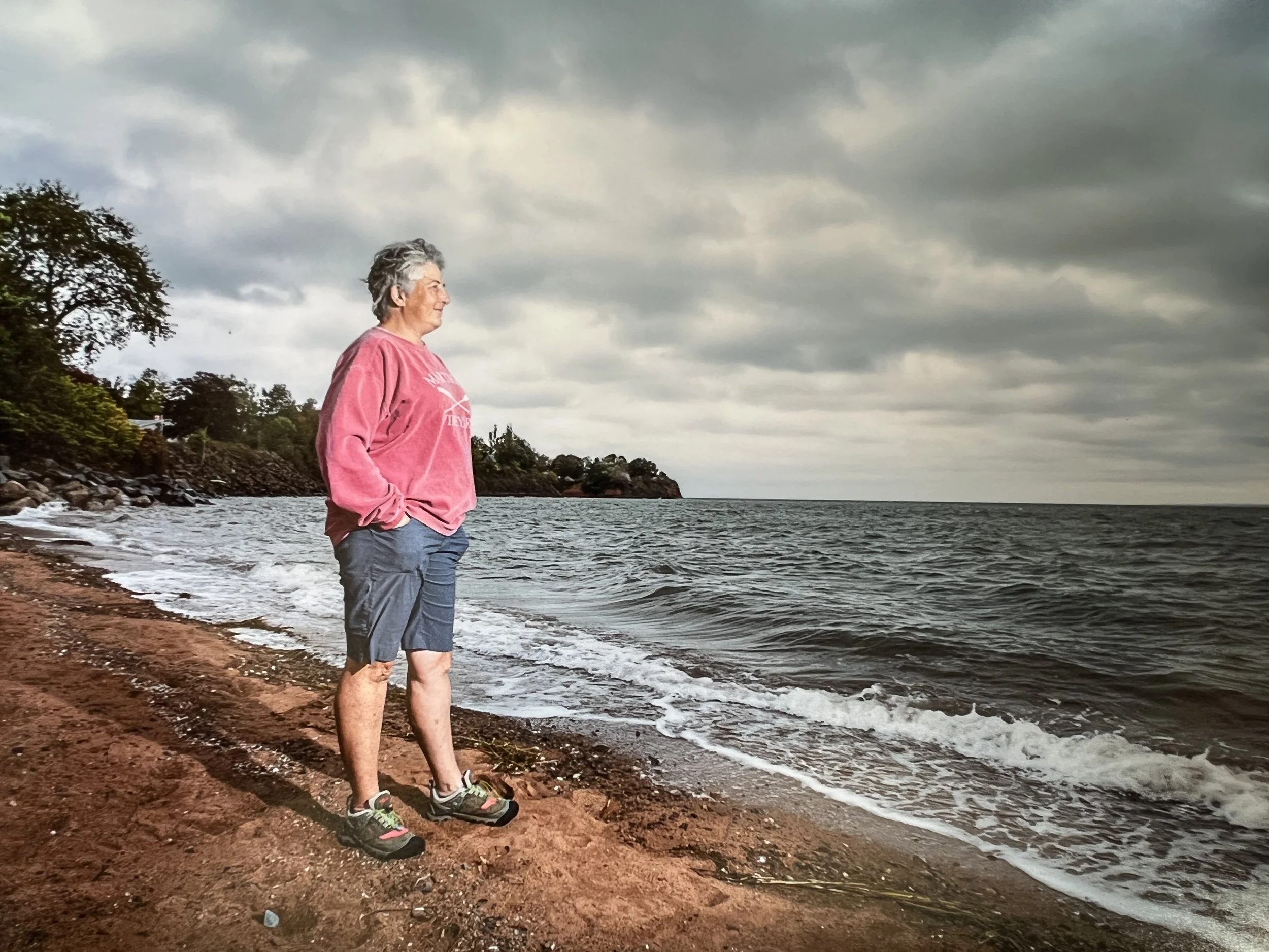 Being seaside is soothing, but the shoreline Karen walks is rocky, not sandy, so it is challenging terrain. She has disc degeneration in her back, plus osteoarthritis. Karen lives with some level of pain, but it doesn’t stop her from focusing on her passion project and making movement a priority.