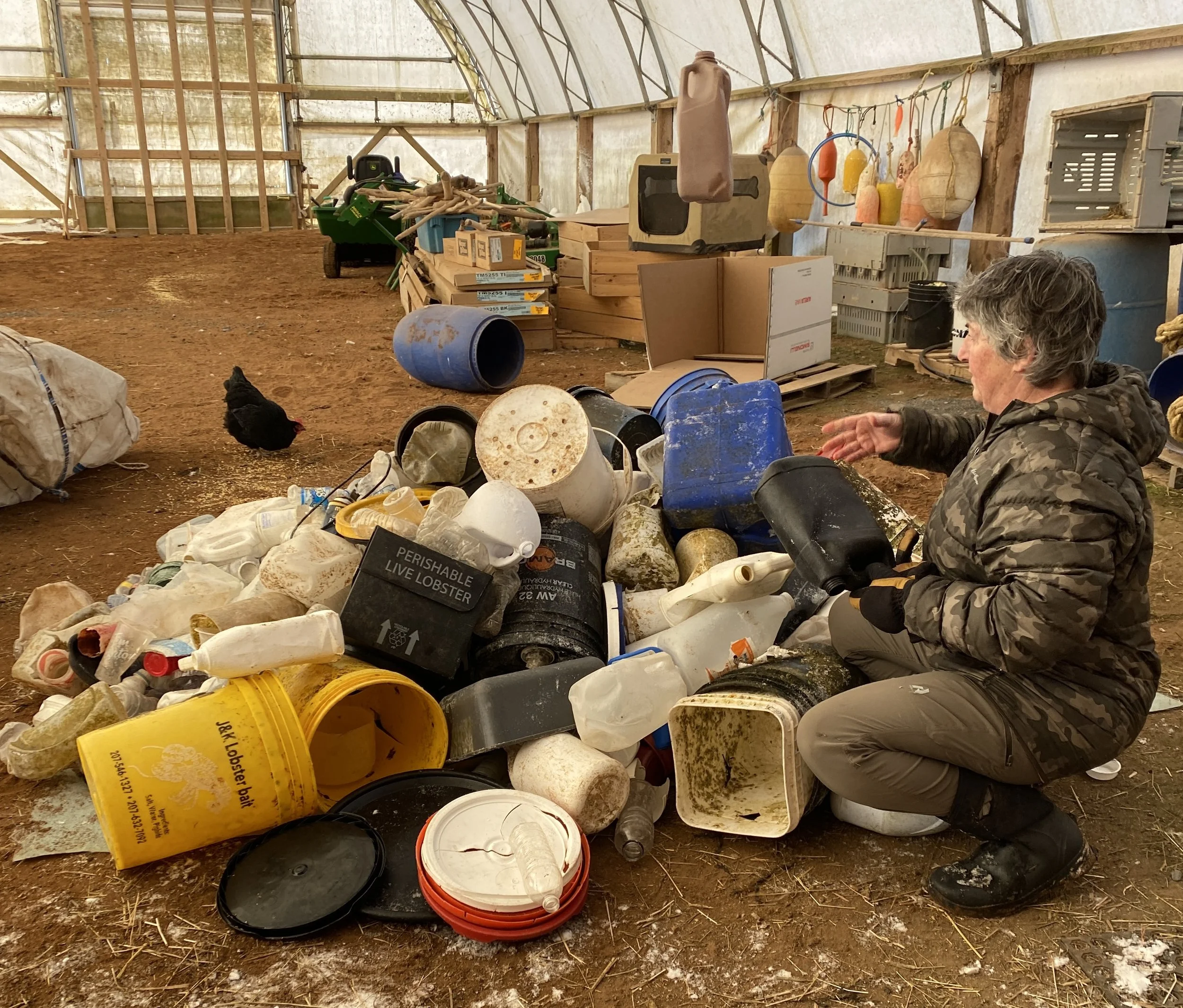 Pieces of plastic, rope, bottle caps, syringes, lobster (rubber) bands, shotgun shells, tampon applicators, jar lids and plastic packing straps used in shipping; the list of garbage she collects from the shore is endless.